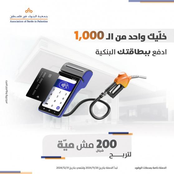 وتتميز الحملة التي ستستمر حتى نهاية العام الجاري بإجراء سحوبات أسبوعية على (200) جائزة نقدية بقيمة (200) شيقل لكل فائز، حيث يدخل على السحب كل من يستخدم بطاقته البنكية بحد أدنى 50 شيقل لحركة الدفع الواحدة، كما تشمل الحملة جوائز مخصصة للعاملين في محطات الوقود، تكريماً لجهودهم في دعم المبادرة وتعزيز ثقافة الدفع الإلكتروني.