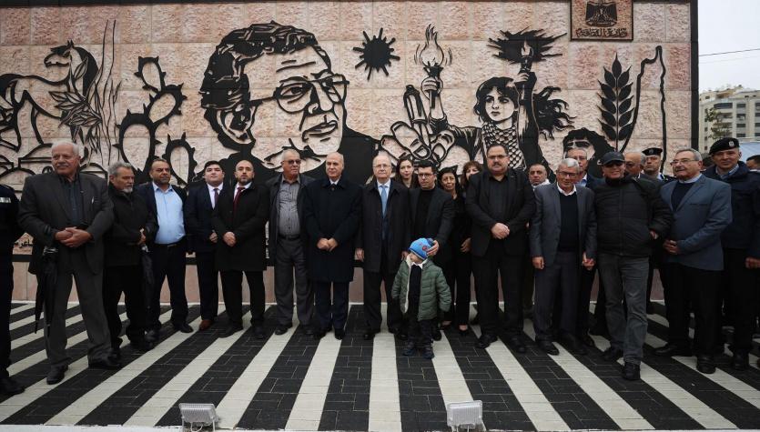 تحت رعاية رئيس الوزراء د. محمد مصطفى، أزيح الستار عن جدارية الشاعر الكبير سميح القاسم، اليوم الأحد في مدينة البيرة، وذلك تخليدا لإرثه الثقافي، بحضور عدد من أعضاء اللجنة التنفيذية لمنظمة التحرير، وأعضاء اللجنة المركزية لحركة فتح، وسفراء، وشخصيات رسمية واعتبارية، وقيادات من الداخل وعائلة الشاعر الراحل سميح القاسم.