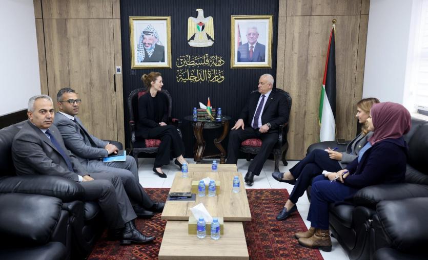 استقبل وزير الداخلية اللواء زياد هب الريح اليوم مديرة مكتب الأمم المتحدة لخدمات المشاريع (UNOPS) كارونا هيرمان، في مقر الوزارة في رام الله.
