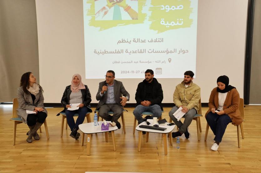 نظم الائتلاف الفلسطيني للحقوق الاقتصادية والاجتماعية والثقافية "عدالة" حواراً للمؤسسات القاعدية الفلسطينية استكمالاً لنهجِهِ في العملِ التعاوني، في إطارِ تعزيزِ الحقوقِ الاقتصاديةِ والاجتماعيةِ والثقافية في فلسطين، بمشاركة واسعة من مؤسسات قاعدية مجتمعية وتعاونيات شبابية ونسوية، وعدد من المهتمين الفاعلين في العمل المجتمعي والأهلي.