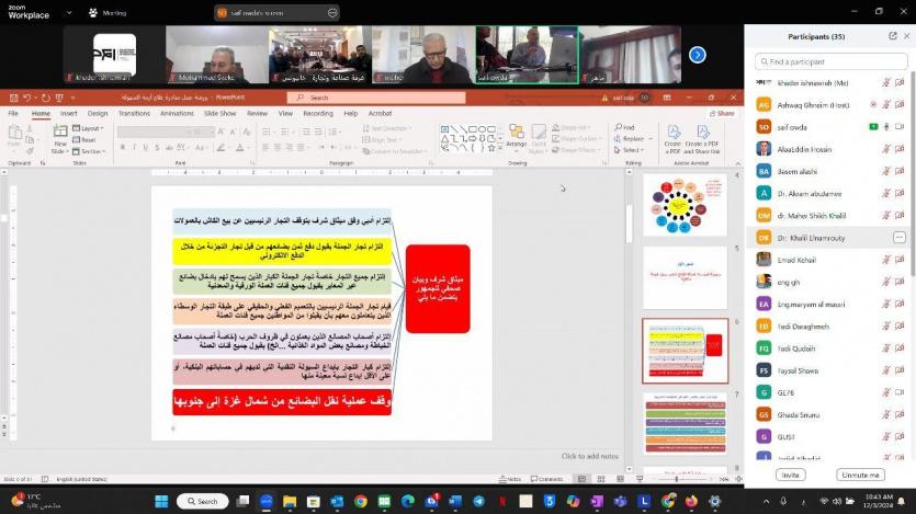 الاتحاد العام للصناعات الفلسطينية يشارك في ورشة عمل في مبادرة لمعالجة ازمة السيولة النقدية