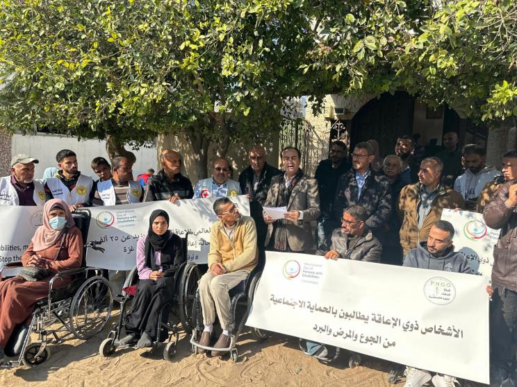 طالب العشرات من الأشخاص ذوي الإعاقة في قطاع غزة وممثلو المنظمات الأهلية العاملة في مجال تأهيل الأشخاص ذوي الإعاقة بضرورة توفير الحماية الاجتماعية من الفقر والمرض والجوع للشعب الفلسطيني، وناشدو بالوقف الفوري لجرائم الإبادة بحق الشعب الفلسطيني وانتهاك القانون الدولي لحقوق الإنسان وحقوق الأشخاص ذوي الإعاقة، و أكدوا على أهمية إعادة فتح المعابر من أجل تمكين المرضى والجرحى وذوي الإعاقة من السفر لتلقي العلاج والضغط على سلطات الاحتلال من أجل السماح بإدخال المساعدات الإنسانية والمستلزمات الطبية والأدوات المساعدة.