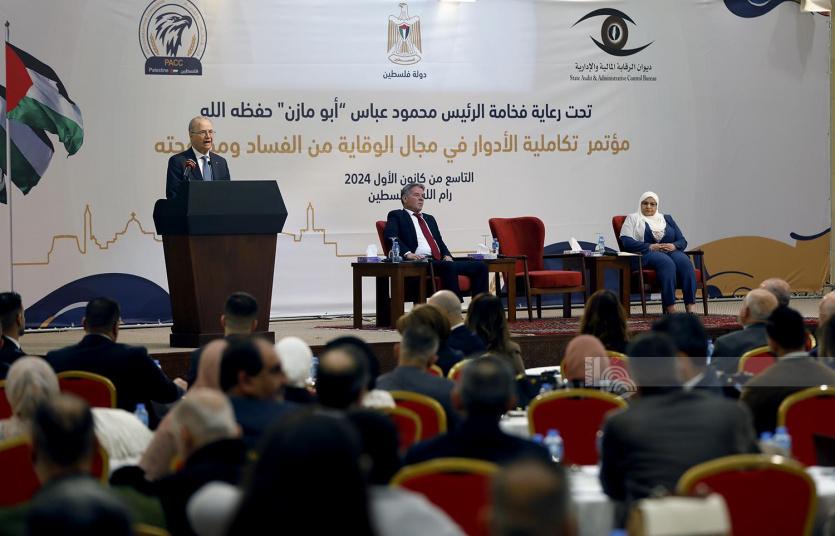 جاء ذلك خلال كلمته نيابة عن الرئيس محمود عباس، في مؤتمر "تكاملية الأدوار في مجال الوقاية من الفساد ومكافحته"، الذي عُقد اليوم الاثنين في قاعة أحمد الشقيري بمقر الرئاسة برام الله، بحضور رئيس هيئة مكافحة الفساد رائد رضوان، ورئيسة ديوان الرقابة الإدارية والمالية أمل فرج وطاقم الديوان، وعدد من الوزراء والمسؤولين والشخصيات الاعتبارية.