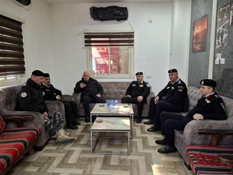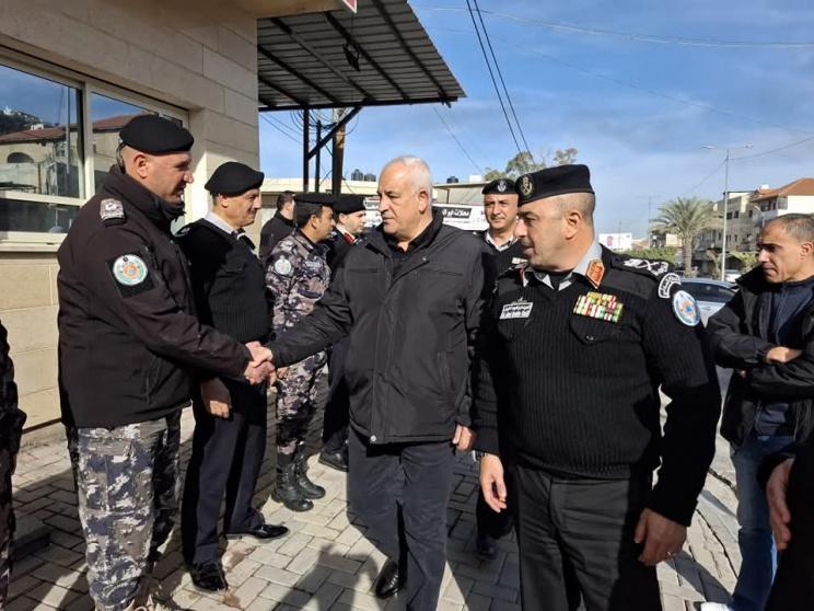 تفقد وزير الداخلية اللواء زياد هب الريح يرافقه مدير عام الدفاع المدني اللواء العبد ابراهيم خليل طواقم الدفاع المدني العاملة في محافظة جنين.