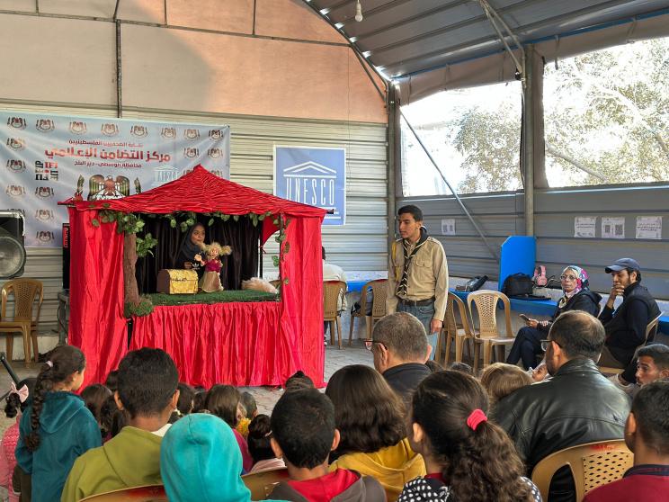 نظمت نقابة الصحفيين الفلسطينيين، الثلاثاء، عرضاً مسرحياً هادفاً، بالتعاون مع فرقة مسرح المخيم بعنوان "صندوق ليلى"، وذلك في مقر مركز التضامن الإعلامي بدير البلح التابع للنقابة.