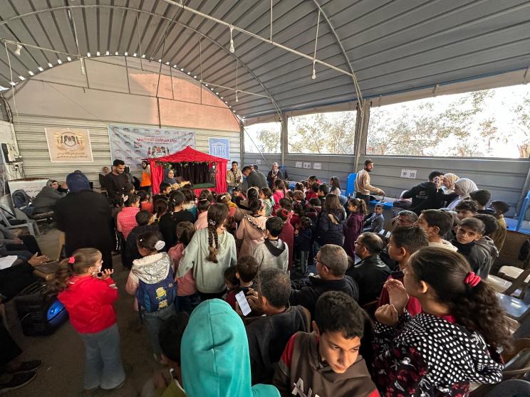 وقال عاهد فروانة أمين سر النقابة إن هذا العرض المسرحي جاء لإدخال الفرحة والسرور على أبناء الصحفيين، وتغيير الجو العام الذي يعيشونه بفعل الحرب والعدوان على قطاع غزة، والظروف غير الطبيعية التي طرأت على حياتهم اليومية جراء النزوح القسري.