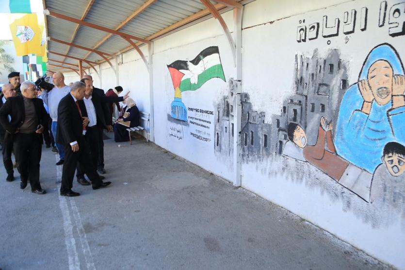 قلقيلية: المحافظ يفتتح جدارية " أوقفوا الإبادة "