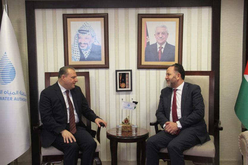 حيث رحب الوزير ميمي بالسفير البدور ، و وضعه في صورة التحديات المتعلقة بالوضع المائي الفلسطيني وأهم القضايا التي تسعى سلطة المياه حاليا العمل عليها للحد من النقص المائي الذي تعاني منه المحافظات الفلسطينية ولا سيما الجنوبية منها.