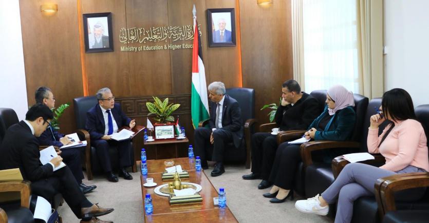 استقبل وزير التربية والتعليم العالي د. أمجد برهم، السفير الياباني الجديد لدى دولة فلسطين أرايكي كاتسو هيكو، وبحث الطرفان سبل تعزيز التعاون في مجال التعليم.