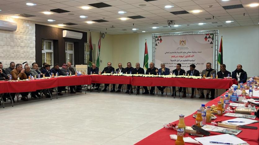 واصل وزير التربية والتعليم العالي د. أمجد برهم، لقاءاته لاستعراض مضامين مبادرة "التعليم من أجل التنمية" ونقاشها مع مختلف أطياف المجتمع المحلي، حيث كان اللقاء اليوم في محافظة الخليل.