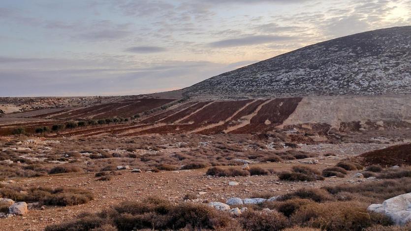 جرف مستوطنون، اليوم الأحد، أراضي المواطنين قرب قرية مخماس شمال شرق القدس المحتلة.
