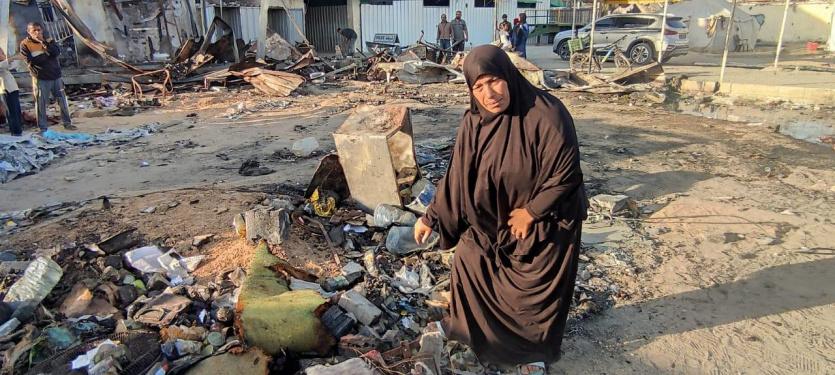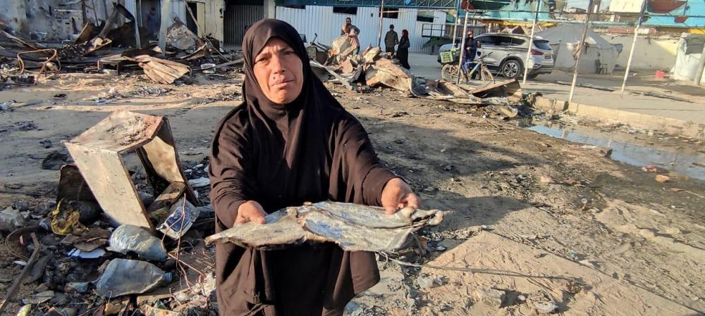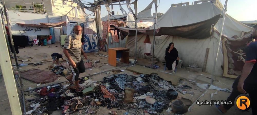 وكذلك زوجته الأربعينية، قالت: "الحرب كبرتني 20 سنة، فش عنا اشي، الخيمة كلها انحرقت، يا رب يوقف معنا أولاد الحلال والقلوب الرحيمة، يطلعوا لنا بعين الرحمة، نجيب عفش وخيمة وأواعي تسترنا أنا وبناتي السبعة وبنتي مرت الشهيد وبنتها.. الحمد لله على كل شيء، الحمد لله". ختمت أم محمد ثم تركتنا ذاهبة خلف زوجها نحو بقايا الخيمة المُحترقة علّهم يتعثرون بقطعة ناجية من الحريق.