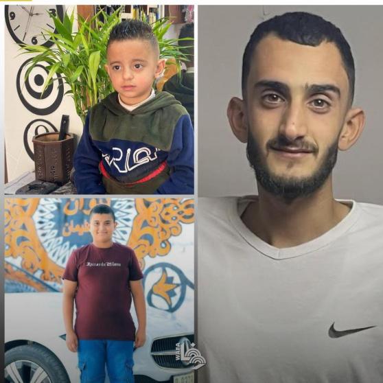 وأفادت مصادر أمنية، بأن الشهداء هم: رضا علي أحمد بشارات (9 أعوام)، وحمزة عمار أحمد بشارات (10 أعوام)، وآدم خير الدين أحمد بشارات (23 عاما)، وقد اختطف الاحتلال جثامينهم.