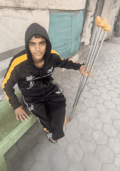على مقعدٍ اسمنتي داخل مستشفى شهداء الأقصى وسط قطاع غزة، يجلس الطفل يوسف محمد حسين (14 عامًا) وحيدًا بجانب عكازيه الحديديين، بعدما فقد معظم أفراد عائلته في مجزرة إسرائيلية.