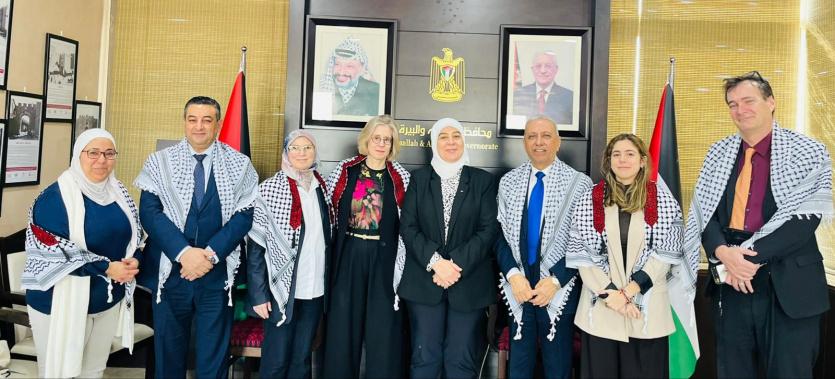 اطلعت محافظ رام الله والبيرة، د. ليلى غنام، رئيس مركز جنيف للرقابة الديمقراطية على القوات المسلحة "ديكاف"، السفيرة نتالي شوارد التي تزور فلسطين، والوفد المرافق لها، على آخر المستجدات الفلسطينية في ظل الابادة واستمرار عدوان الاحتلال على قطاع غزة والضفة الغربية.