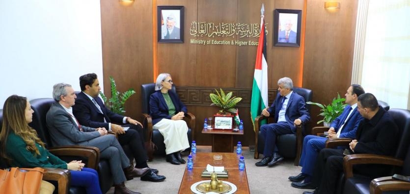 وضم الوفد؛ المديرة التنفيذية للمؤسسة في لندن غابرييلا وايجمان، والمدير الإقليمي أحمد الهنداوي، ومدير المؤسسة في فلسطين زافيير جوبارت، وومستشارة التعليم نادين خلف، بحضور وكيل "التربية والتعليم" د. نافع عساف، والوكيل المساعد للشؤون الطلابية صادق الخضور، ومديرة العلاقات الدولية والعامة نيفين مصلح.