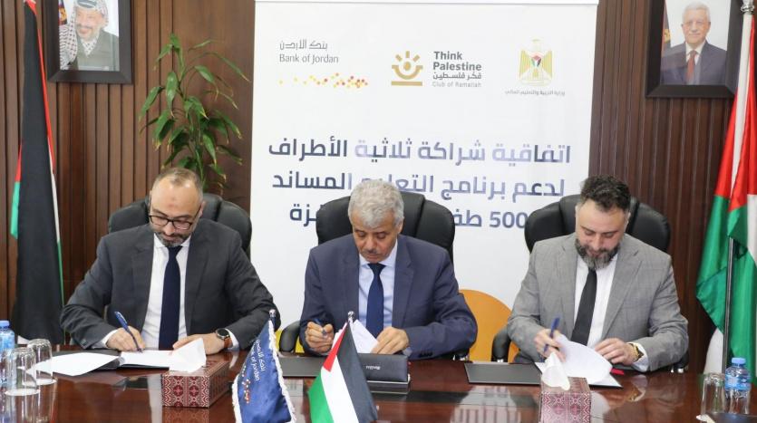 "التربية" توقع اتفاقية  تعاون مع بنك الأردن و"فكر فلسطين" لدعم التعليم في قطاع غزة