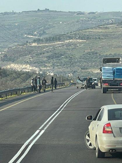 وحذر المواطنون من الوصول إلى تلك المنطقة حيث أغلق المستوطنون الشارع بالكامل.