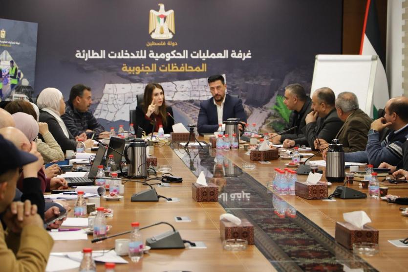 من جهته، أكد منسق غرفة العمليات الحكومية للتدخلات الطارئة في المحافظات الجنوبية، مهدي حمدان، أن الأولوية القصوى للفريق حاليًا تتمثل في إنجاز عمليات الإغاثة الطارئة والإيواء، وتنسيق توزيع المساعدات الإنسانية على أهالي القطاع. وقال: "على الرغم من التحديات الكبيرة، نجحنا في توحيد الأهداف والخطط، وتعزيز مأسسة العمل ومركزية المعلومات". وأضاف أن غرفة العمليات تُعد الحاضنة الأساسية لجميع الشركاء، بما في ذلك أوتشا، وUNDP، والهيئة العربية الدولية لإعادة الإعمار، ومجلس الإسكان الفلسطيني.
