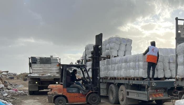كما تم توزيع نحو 74 ألف طرد صحي، و77 ألفا من الفرشات والبطانيات، 27 ألف طرد ملابس وأحذية، و42 ألف غطاء، بالشراكة مع الهلال الأحمر والصليب الأحمر والمؤسسات الشريكة.