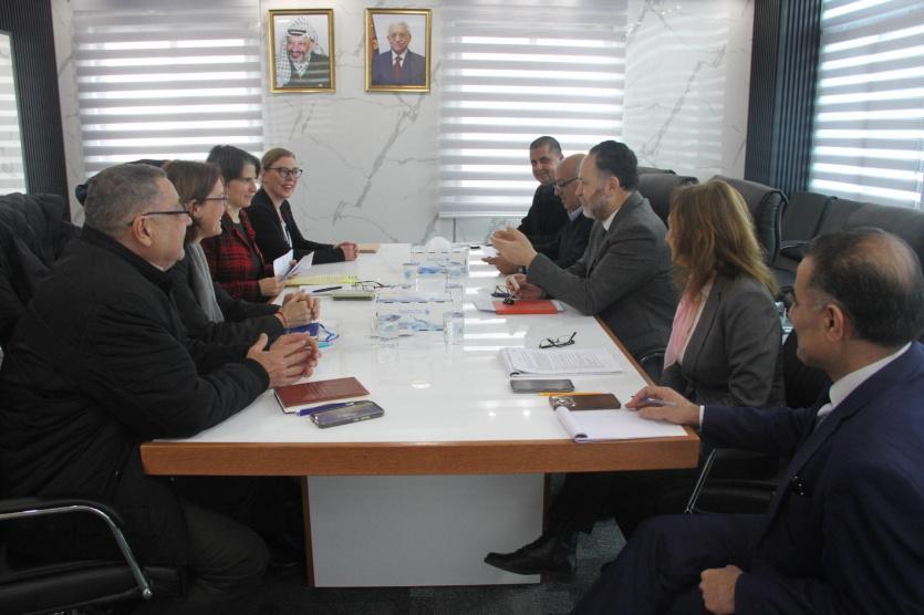أكد رئيس سلطة المياه د. زياد الميمي اليوم على أهمية عودة الوكالة الألمانية للتعاون الدولي GIZ لدعم برامج استراتيجية لقطاع المياه والصرف الصحي والتي تعكس عمق العلاقات الفلسطينية الألمانية. جاء خلال لقائه اليوم مديرة برنامج مصادر المياه والاستدامة في الوكالة الألمانية للتنمية في فلسطين السيدة ناتالي بارتليت والسيدةروث ميلر نائب مدير التعاون في الممثلية الألمانية والسيدة انيت بريمير رئيسة وحدة إدارة الدعم ، م. رامز التيتي مسؤول مشاريع وبحضور طاقم سلطة المياه المستشار الفني د. معاذ أبو سعدة وم. نجود عبده مدير وحدة تنسيق المساعدات، ومدير عام التطوير والتدريب زياد الفقهاء ومدير عام المشاريع م. زياد ضراغمة.
