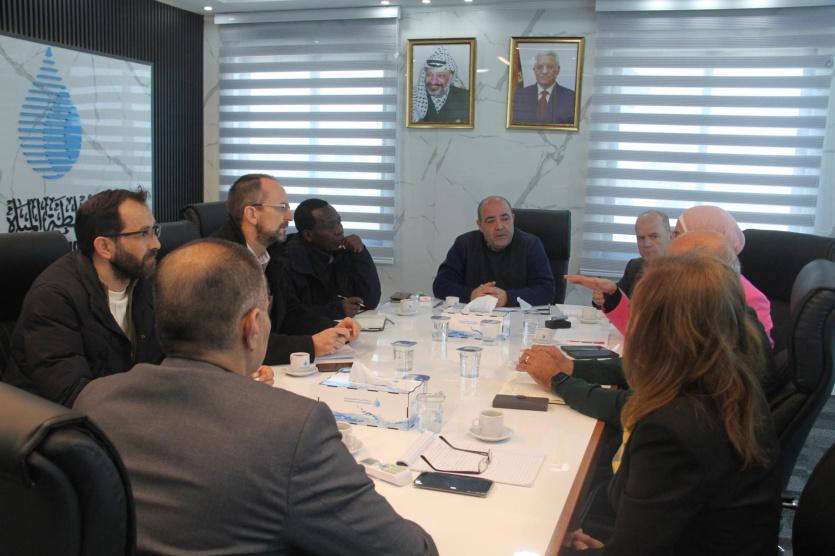 عقد في مقر سلطة المياه اليوم اجتماعاً فنياً لبحث ومناقشة تطورات العمل في المشاريع الخاصة بالمياه والصرف الصحي على المستويين القريب والبعيد في ظل ما تشهده المدن الفلسطينية من عدوان اسرائيلي مستمر تسبب في العديد من الخسائر في مختلف المجالات الحيوية. حيث ناقش اللقاء بدايةً خطوات العمل الجاري تنفيذها ضمن عملية التدخلات الطارئة التي تقودها الحكومة الفلسطينية لضمان توفير الاحتياجات الإنسانية والمتطلبات الفنية لضمان توفير الحد الادنى من الاحتياجات اللازمة لاستمرار الحياة في قطاع غزة، الى جانب التطرق الى ما تشهده الضفة الغربية وتحديداً محافظتي طولكرم وجنين من عدوان مستمر على البنية التحتية وتدمير العديد من الخطوط المائية الرئيسية، حيث أكد فريق سلطة المياه على ضرورة تضافر الجهود وتخصيص الدعم اللازم لتأمين المعدات وقطع الغيار اللازمة.