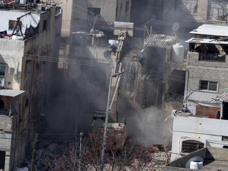 وكانت جرافات الاحتلال قد شرعت أمس بعملية الهدم التي طالت عددا من المنازل والمباني السكنية بدءا من محيط مسجد أبو بكر الصديق في ساحة المخيم.