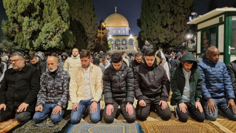 60 ألفا يؤدون صلاتي العشاء والتراويح في رحاب المسجد الأقصى