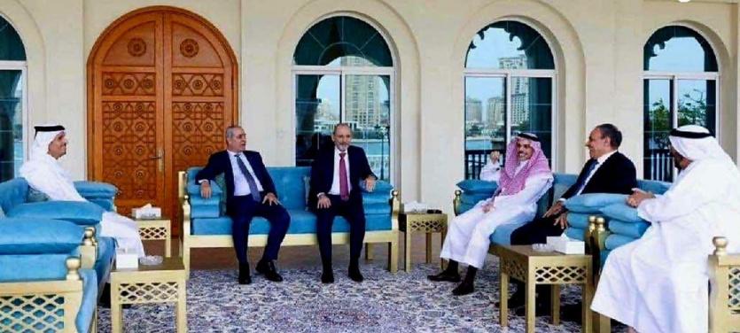 وضم الاجتماع رئيس مجلس الوزراء وزير خارجية دولة قطر محمد بن عبد الرحمن آل ثاني، ونائب رئيس الوزراء وزير الخارجية وشؤون المغتربين بالمملكة الأردنية الهاشمية أيمن الصفدي، ووزير الخارجية بالمملكة العربية السعودية فيصل بن فرحان، ووزير الخارجية والهجرة وشؤون المصريين بالخارج بجمهورية مصر العربية بدر عبد العاطي، ووزير دولة بوزارة الخارجية في دولة الإمارات العربية المتحدة خليفة شاهين المرر، وأمين سر اللجنة التنفيذية لمنظمة التحرير الفلسطينية حسين الشيخ، ومبعوث الرئيس الأميركي إلى الشرق الأوسط ستيف ويتكوف.