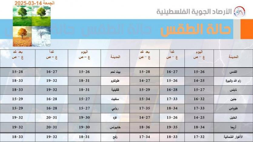 وفيما يلي درجات الحرارة العظمى والصغرى المتوقعة كما يلي :