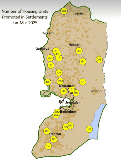 وتشمل الموافقات الرئيسية أحياءً جديدة في مستعمرات مثل: إيتامار (284 وحدة)، ويكير (464 وحدة)، وكوخاف يعقوب (1016 وحدة)، وأسفار (509 وحدات)، ومعاليه آموس (561 وحدة).