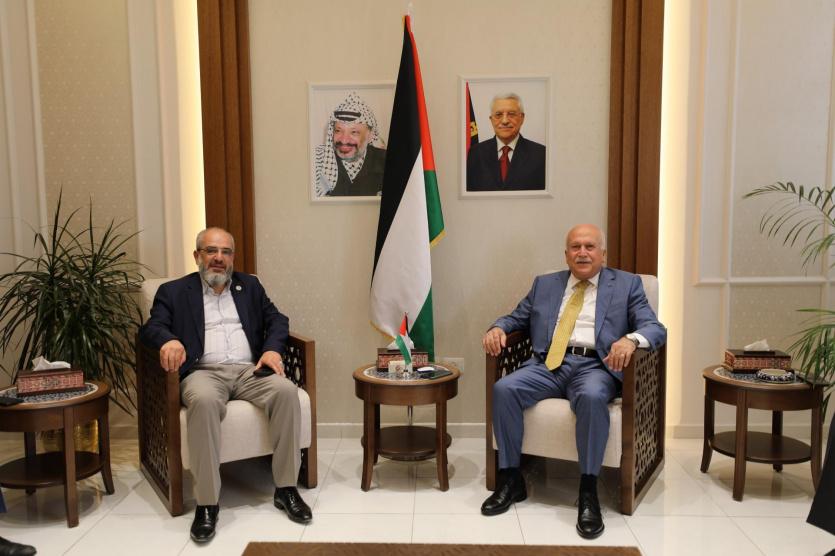 بحث وزير الاقتصاد الوطني محمد العامور وجمعية رجال الأعمال الفلسطينيين، اليوم الاربعاء، التحديات الاقتصادية الراهنة والجهود التي تبذل لتعزيز صمود القطاع الخاص في ظل حرب الإبادة التي تنفذها حكومة الاحتلال والتدمير الممنهج للاقتصاد الفلسطيني.
