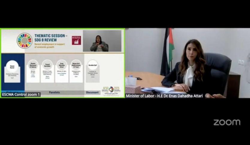 وطالبت الدكتورة عطاري المجتمع الدولي، خلال مداخلتها، بتقديم دعم مباشرومستدام لبرامج التشغيل والتدريب التي تنفذها وزارة العمل، والضغط الدولي لرفع القيود الإسرائيلية التي تعرقل حركة العمال والبضائع، وتعيق إعادة الإعمار، بالإضافة إلى تعزيز الشراكات مع القطاع الخاص وتوفير بيئة محفزة لدوره في خلق فرص العمل، من خلال التعاون مع الشركات المحلية والدولية والاستثمارات المنتجة.