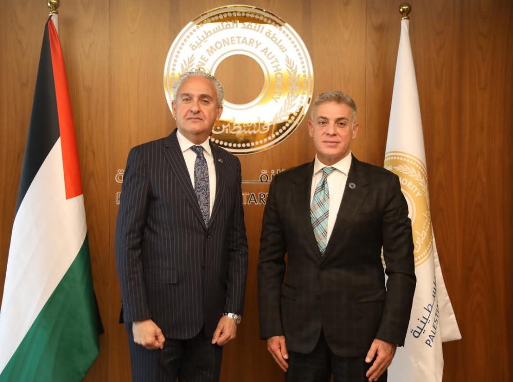 بحث محافظ سلطة النقد يحيى شنار، مع رئيس بلدية رام الله عيسى قسيس، سبل تعزيز التعاون المشترك في مجالات التحول الرقمي والتنمية المستدامة.