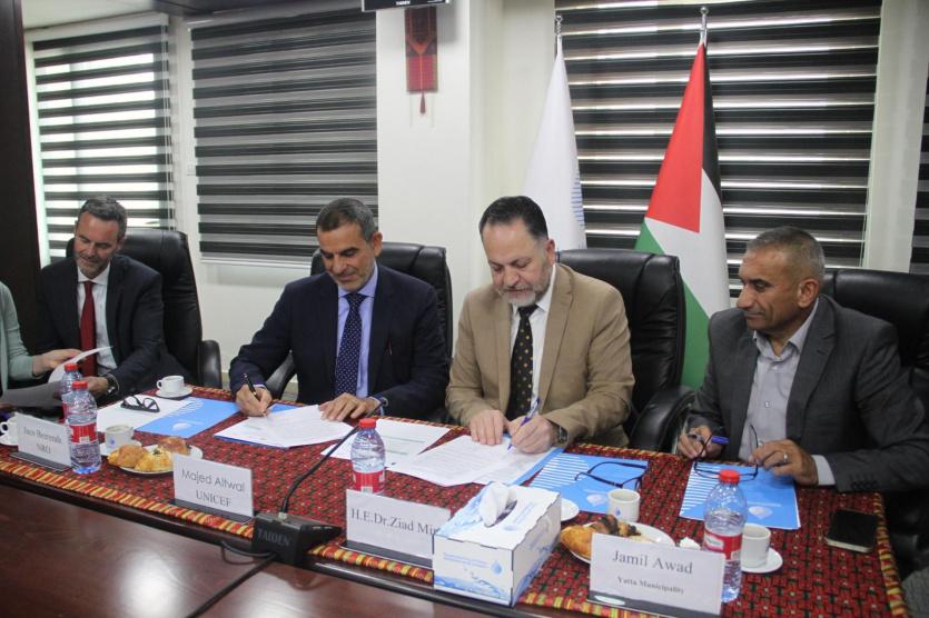 أعلن الوزير زياد الميمي رئيس سلطة المياه اليوم أن مدينة يطا التي تعد من المناطق الأفقر مائيا تحقق انجازً هاماً من خلال الإنتهاء من أعمال المرحلة الأولى لمشروع التزود بالمياه الممول من قبل الحكومة الهولندية من خلال منظمة اليونيسيف، هذا المشروع الذي يساهم في أن تحظى المدينة التي عانت لسنين عدة من آثار وقف العمل بالمشروع نتيجة وقف الدعم السابق من قبل الوكالة الأمريكية اخيراً بالمياه. جاء حديث الميمي خلال حفل الانتهاء من المرحلة الأولى للمشروع والذي عقد في مقر سلطة المياه بمشاركة الممثلية الهولندية ممثلة بنائب مدير البعثة السيد يعقوب بيرندز، والممثل الخاص لمنظمة اليونيسف السيد ماجد الطوال وبلدية يطا ممثلة برئيسها السيد جميل عوض.