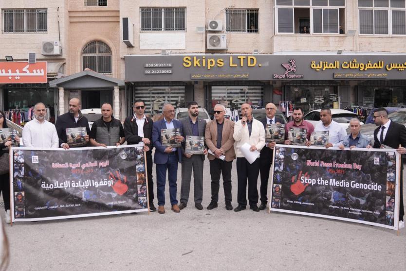 وأضافت النقابة خلال مؤتمر صحفي ووقفة في مدينة رام الله، اليوم الأحد، تزامنا مع إحياء اليوم العالمي لحرية الصحافة، شعارنا في هذا اليوم "أوقفوا الإبادة الإعلامية"، ليس مجرد عبارة، بل هو انعكاس لحقيقة دامغة، نابعة من حجم المأساة والدماء النازفة: 210 شهداء من الصحفيين، و665 شهيدًا من أسرهم وعائلاتهم، إلى جانب عدد كبير من الجرحى، والمعاناة اليومية للأسرى الصحفيين في سجون الاحتلال".