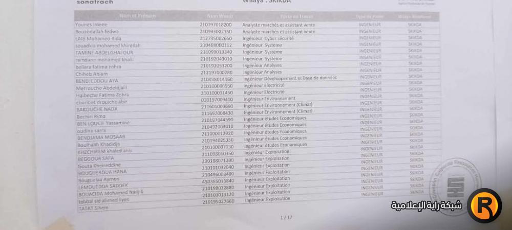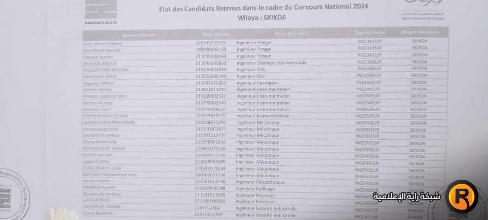 سيتم تنصيب الناجحين تدريجيًا عبر مختلف المنشآت والمواقع التابعة لسوناطراك، وذلك وفقًا للاحتياجات المسجلة، وفي إطار احترام التخصصات والكفاءات المطلوبة. (النهار أونلاين)