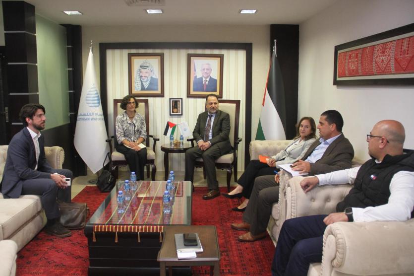 أكد رئيس سلطة المياه د. زياد الميمي اليوم على أهمية الإسراع في تنفيذ مشاريع محطات المعالجة والتخلص من وقف تدفق المياه العادمة التي باتت ذريعة جديدة يعتمدها الاحتلال لاقتطاع المزيد من الأموال الفلسطينية والتي جاء آخرها اقتطاع 44 مليون شيقل بحجة معالجة المياه العادمة. جاء ذلك خلال لقائه اليوم مع مديرة الوكالة الفرنسية للتنمية في فلسطين السيدة فيرونيك سوفا يرافقها انطوان بوج مدير المشاريع ، وبحضور الطاقم الفني المختص من سلطة المياه م. نجود عبده مدير وحدة تنسيق المساعدات وزياد دراغمة مدير وحدة المشاريع، وم. مراد فقهاء مدير مشروع محطة الخليل.