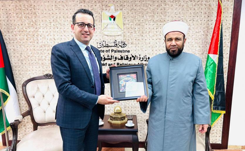 وزير الأوقاف يبحث مع بنك فلسطين تعزيز التوعية بخطر الاحتيال المالي عبر خطب الجمعة