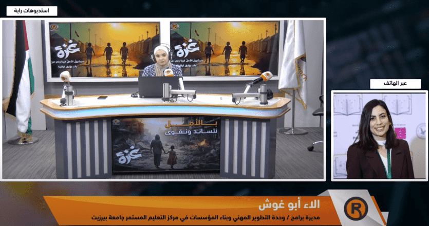 من جهتها، تحدثت آلاء أبو غوش، مديرة برامج وحدة التطوير المهني وبناء المؤسسات في مركز التعليم المستمر بجامعة بيرزيت، عن التصميم الشامل للبرنامج، مشيرة إلى أنه يمتد على مدار ستة أشهر ويتضمن رحلة تعليمية كاملة تشمل: تطوير المادة التدريبية، وتدريبات ميدانية وعملية بمجموع 210 ساعات، وإرشاد فردي لكل مشارك، ودعم ما بعد العرض لضمان استمرارية المشاريع.