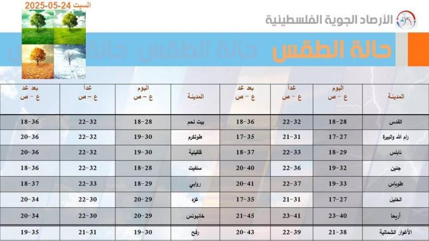 وفيما يلي درجات الحرارة العظمى والصغرى المتوقعة :