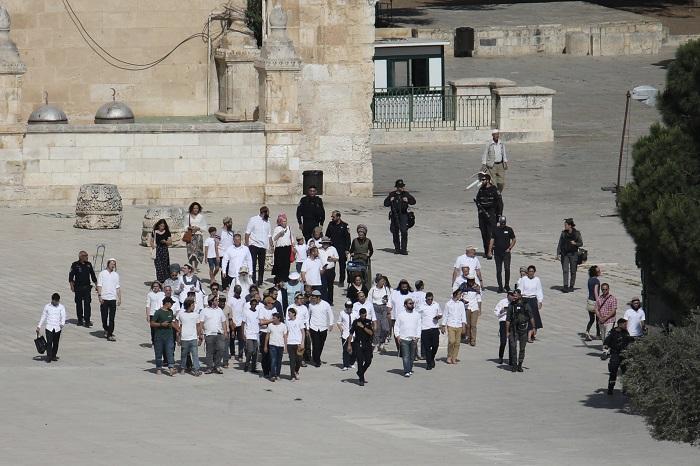 وأفادت مصادر محلية، بأن نحو 1500 مستوطن اقتحموا المسجد الأقصى، وأدوا طقوسا تلمودية واستفزازية في باحاته، فيما قامت مستوطنة برفع علم الاحتلال والرقص فيه عند المنطقة الشرقية من المسجد، وذلك تزامنا مع نشر شرطة الاحتلال حواجز حديدية في محيط باب العامود والبلدة القديمة للتضييق على المقدسيين وسط إجراءات عسكرية مشددة.