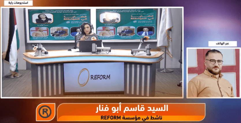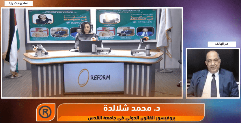 واستضافت الحلقة كلًا من د. محمد شلالدة، بروفيسور القانون الدولي في جامعة القدس، ومجدي العدرة، رئيس بلدية خلة المية، والناشط قاسم أبو فنار من مؤسسة REFORM.