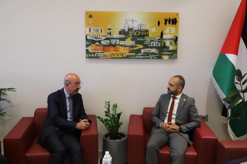 كما قدم عصفور عرضاً عن الجامعة وكلياتها وما تقدمه من تخصصات دراسية تعلمية، مشيراً إلى أن الجامعة تقوم على جمع تاريخ فلسطين في مكتبتها.