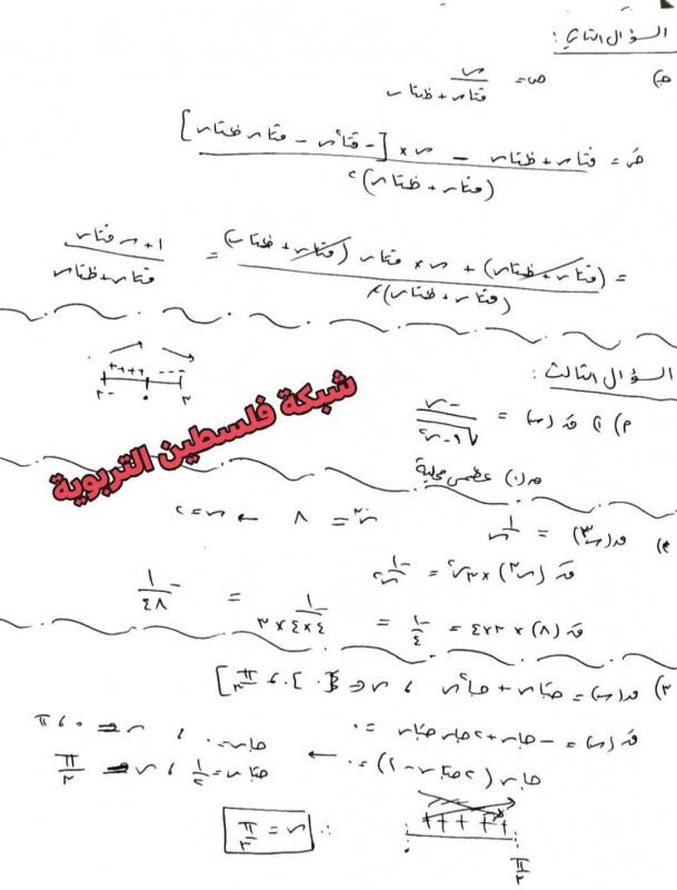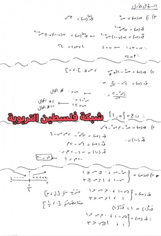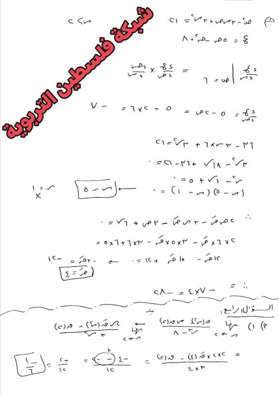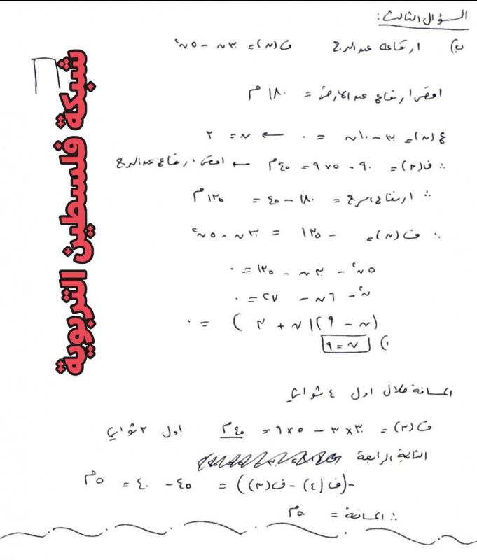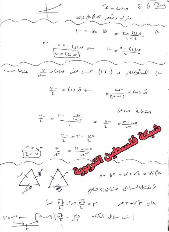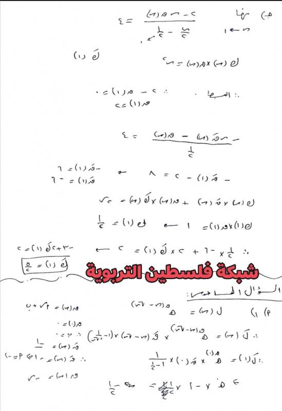 إجابات حل امتحان الرياضيات العلمي 2025 للثانوية العامة توجيهي فلسطين
