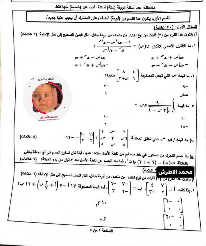 وتنوعت الأسئلة في الامتحان بين الأسئلة الموضوعية والإنشائية، والمسائل التطبيقية على المصفوفات، المتجهات، النهايات، التكامل، والمعادلات النسبية، ما يتطلب تركيزاً عالياً وفهماً معمقاً من الطلبة للمفاهيم الرياضية.