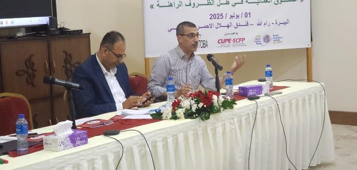 جاء ذلك خلال ورشة الحوار السياساتي التي نظمها مركز الديمقراطية وحقوق العاملين بعنوان "الحقوق العمالية في ظل الظروف الراهنه"، بهدف تعزيز الحقوق العمالية وتفعيل دور النقابات في الدفاع عنها باشراف سماح فراخنه وآمنه العمري من وحدتي القانون والثقافة والتدريب في المركز، وبمشاركة ممثلي نقابات العاملين في الهلال الأحمر، مركز جبل النجمة للتأهيل، العاملين في الخدمات البريدية في رام الله والخليل والعاملين في بلديتي بيتونيا وقلقيلية والعاملات في رياض الأطفال في بيت لحم، وجمعية إنعاش الأسرة، شركة البركة للتأمين وشركة (IPS) للتوصيل، بحضور ممثلين عن وزارة العمل وغرفة تجارة وصناعة محافظة رام الله والبيرة. بدعم من النقابة الكندية للوظيفة العمومية وتحالف الوظيفة العمومية في كندا وصندوق العدالة الاجتماعية.