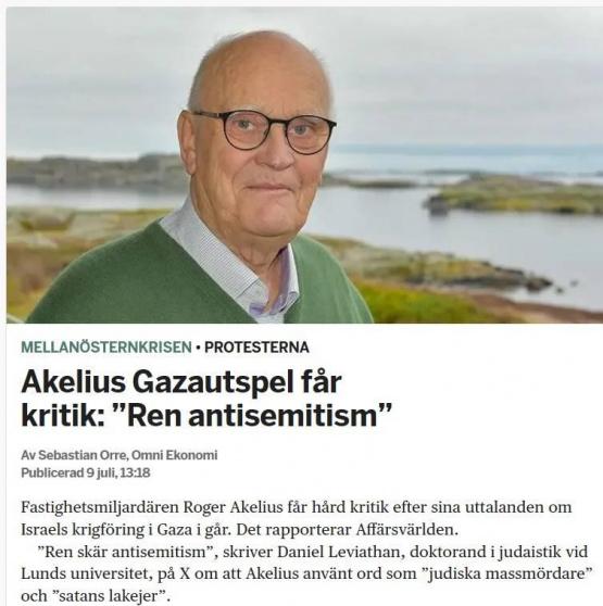 ملياردير سويدي يعلن بيع أسهم في شركته العقارية لدعم غزة