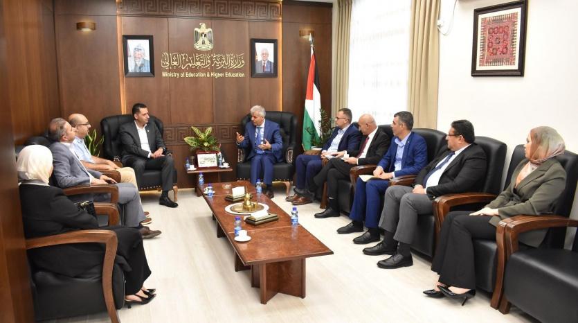 بحث وزير التربية والتعليم العالي أ. د. أمجد برهم، في مكتبه، اليوم، مع وفدٍ من الرابطة الطبيَّة الفلسطينية الأمريكية سبل تعزيز التعاون المُشترك، خاصةً بمجال دعم التعليم الطبي في قطاع غزة.