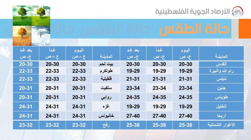 وفيما يلي درجات الحرارة العظمى والصغرى المتوقعة: